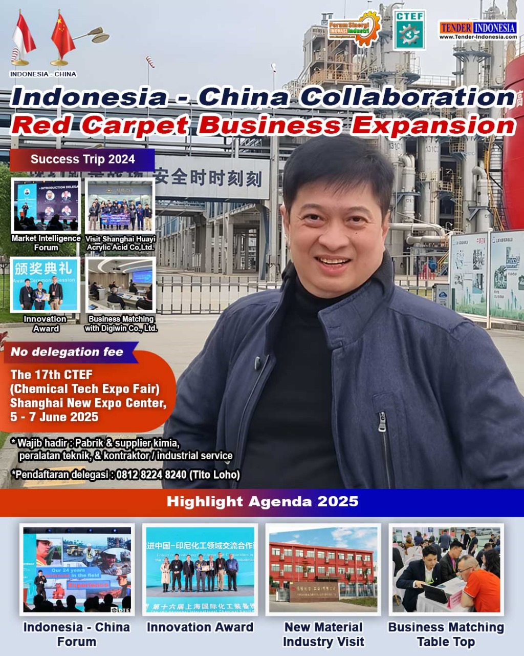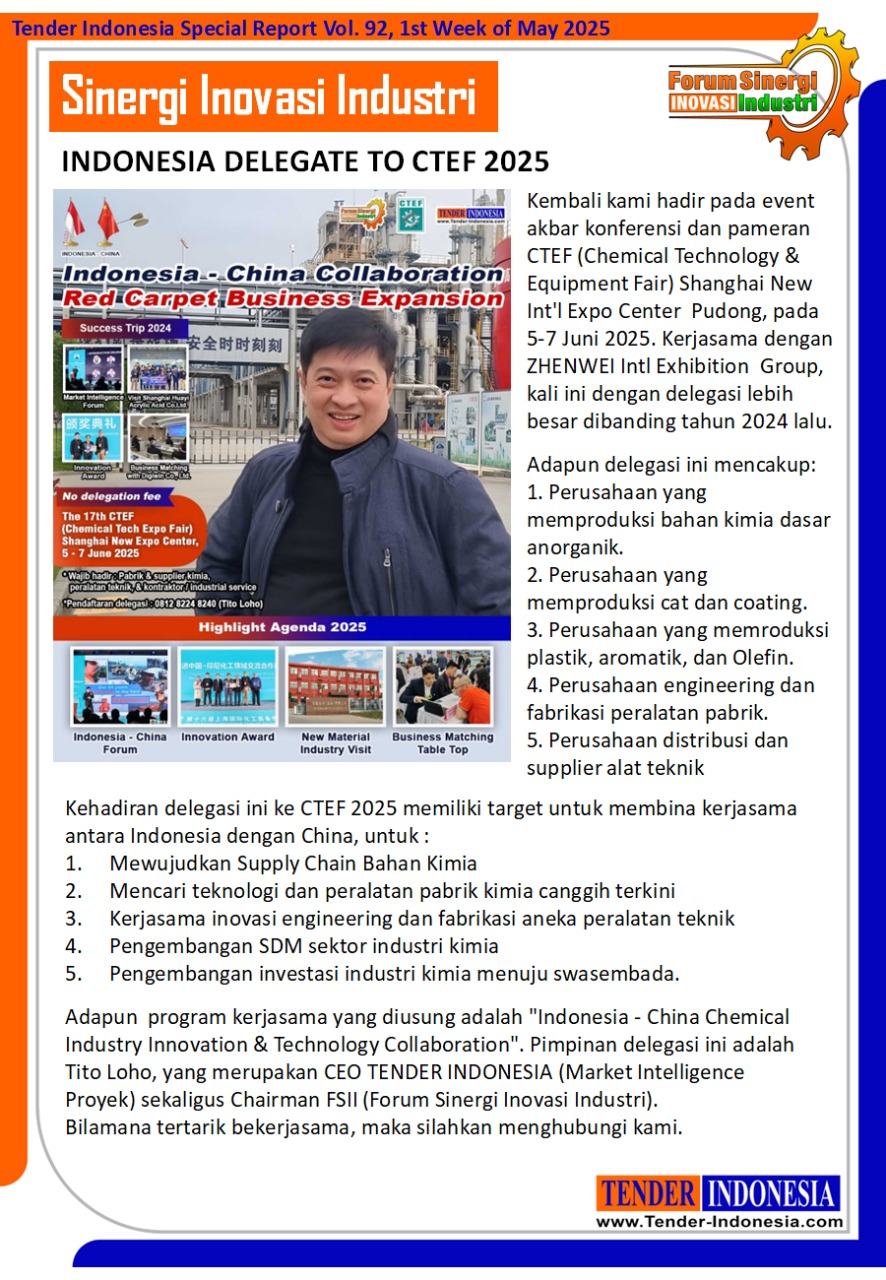 "Indonesia - China Chemical Industry Innovation & Technology Collaboration". Pimpinan delegasi ini adalah Tito Loho, yang merupakan CEO TENDER INDONESIA (Market Intelligence Proyek) sekaligus Chairman FSII (Forum Sinergi Inovasi Industri).