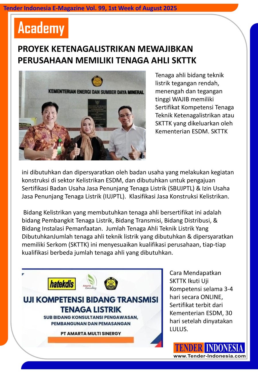 Proyek Ketenagalistrikan Mewajibkan Perusahaan Memiliki Tenaga Ahli SKTTK