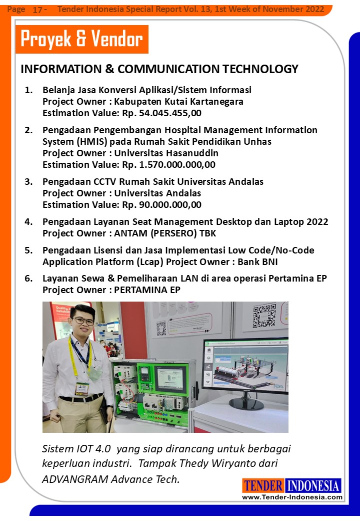 Sistem IOT 4.0 yang siap dirancang untuk berbagai keperluan industri. Tampak Thedy Wiryanto dari ADVANGRAM Advance Tech.