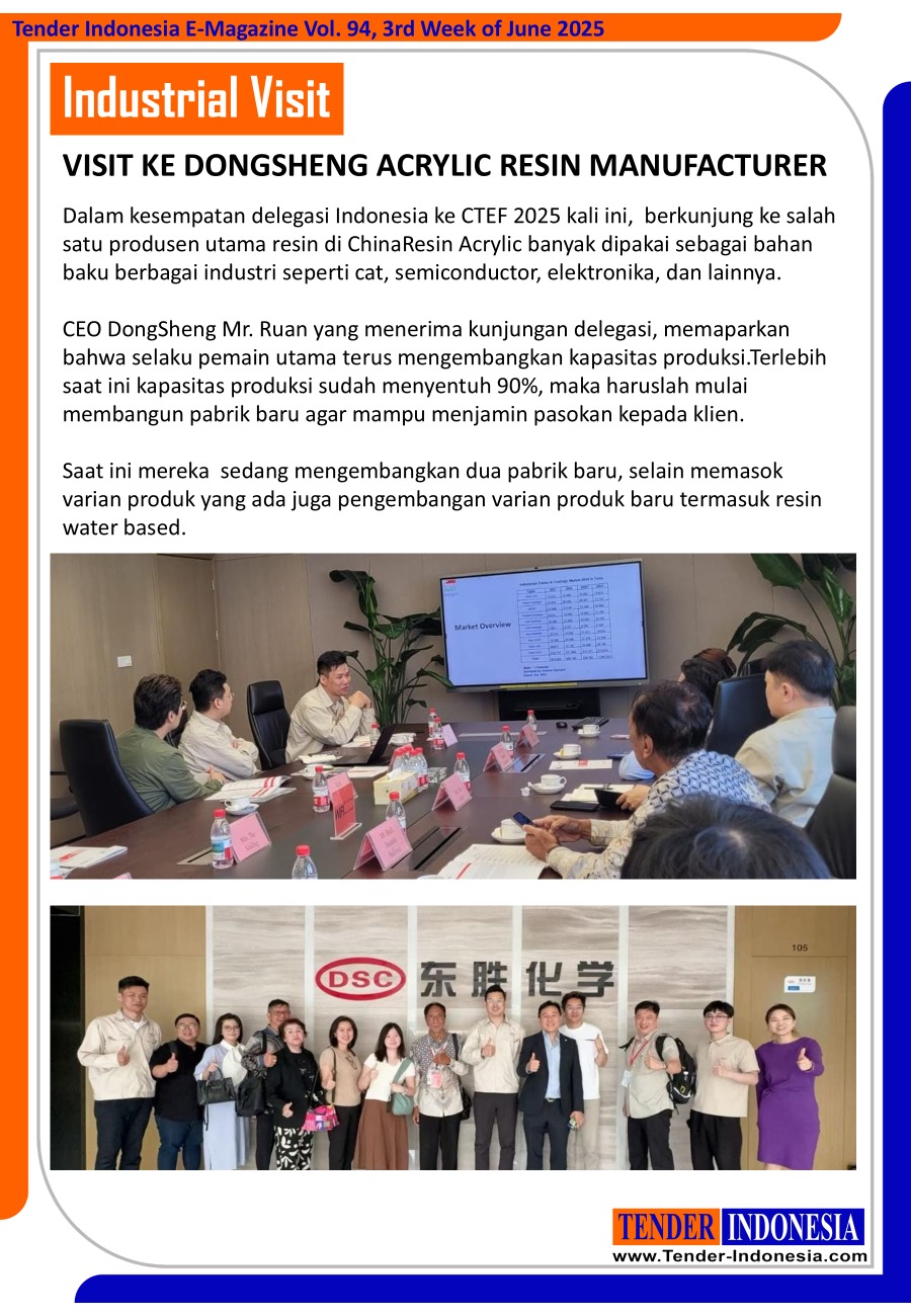 Dalam kesempatan delegasi Indonesia ke CTEF 2025 kali ini,  berkunjung ke salah satu produsen utama resin di ChinaResin Acrylic banyak dipakai sebagai bahan baku berbagai industri seperti cat, semiconductor, elektronika, dan lainnya.