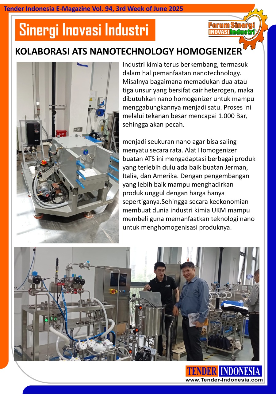 menjadi seukuran nano agar bisa saling menyatu secara rata. Alat Homogenizer buatan ATS ini mengadaptasi berbagai produk yang terlebih dulu ada baik buatan Jerman, Italia, dan Amerika. Dengan pengembangan yang lebih baik mampu menghadirkan produk unggul dengan harga hanya sepertiganya. Sehingga secara keekonomian membuat dunia industri kimia UKM mampu membeli guna memanfaatkan teknologi nano untuk menghomogenisasi produknya.
