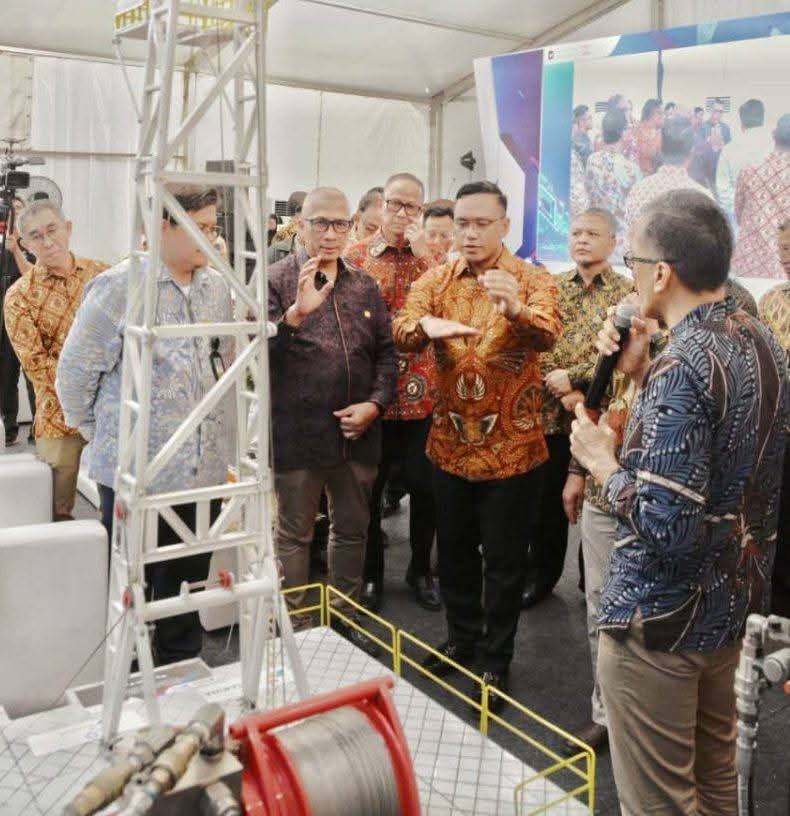 Dirut Pertamina Simon Aloysius, menyaksikan model dan paparan mengenai teknologi Rig Merah Putih