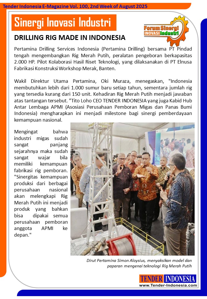Pertamina Drilling Services Indonesia (Pertamina Drilling) bersama PT Pindad tengah mengembangkan Rig Merah Putih, peralatan pengeboran berkapasitas 2.000 HP. Pilot Kolaborasi Hasil Riset Teknologi, yang dilaksanakan di PT Elnusa Fabrikasi Konstruksi Workshop Merak, Banten.