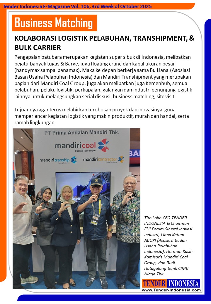 Pengapalan batubara merupakan kegiatan super sibuk di Indonesia, melibatkan begitu banyak tugas & Barge, juga floating crane dan kapal ukuran besar (handymax sampai panamax). Maka ke depan berkerja sama Bu Liana (Asosiasi Basan Usaha Pelabuhan Indonesia) dan Mandiri Transhipment yang merupakan bagian dari Mandiri Coal Group, juga akan melibatkan juga Kemenhub, semua pelabuhan, pelaku logistik, perkapalan, galangan dan industri penunjang logistik lainnya untuk melangsungkan serial diskusi, business matching, site visit.