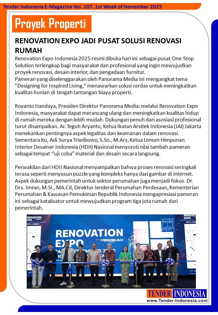 Royanto Handaya, Presiden Direktur Panorama Media: melalui Renovation Expo Indonesia, masyarakat dapat merancang ulang dan meningkatkan kualitas hidup di rumah mereka dengan lebih mudah. Dukungan penuh dari asosiasi profesional turut disampaikan. Ar. Teguh Aryanto, Ketua Ikatan Arsitek Indonesia (IAI) Jakarta menekankan pentingnya aspek legalitas dan keamanan dalam renovasi. Sementara itu, Adi Surya Triwibowo, S.Sn., M.Ars, Ketua Umum Himpunan Interior Desainer Indonesia (HDII) Nasional menyoroti nilai tambah pameran sebagai tempat “uji coba” material dan desain secara langsung.