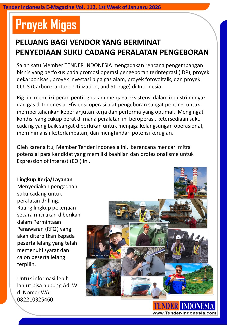 Salah satu Member TENDER INDONESIA mengadakan rencana pengembangan bisnis yang berfokus pada promosi operasi pengeboran terintegrasi (IDP), proyek dekarbonisasi, proyek investasi pipa gas alam, proyek fotovoltaik, dan proyek CCUS (Carbon Capture, Utilization, and Storage) di Indonesia.