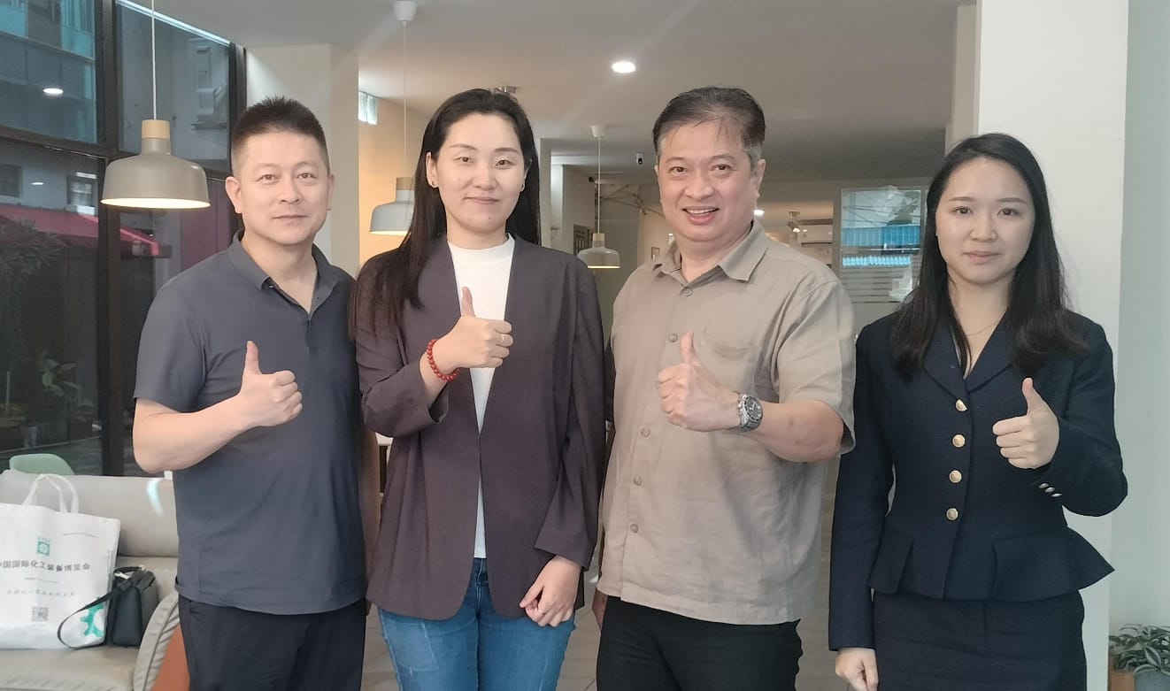Tito Loho - CEO TENDER INDONESIA yang juga Ketua Bidang Hubungan Antar Lembaga APMI (Asosiasi Pemboran Migas & Panas Bumi Indonesia), Ms.Freya Liu (Director Zhenwei International), Ms.Sun (General Manager) & Mr.Liu (Deputy General Manager). https://tender-landingpage.com/oil-gas-drilling/