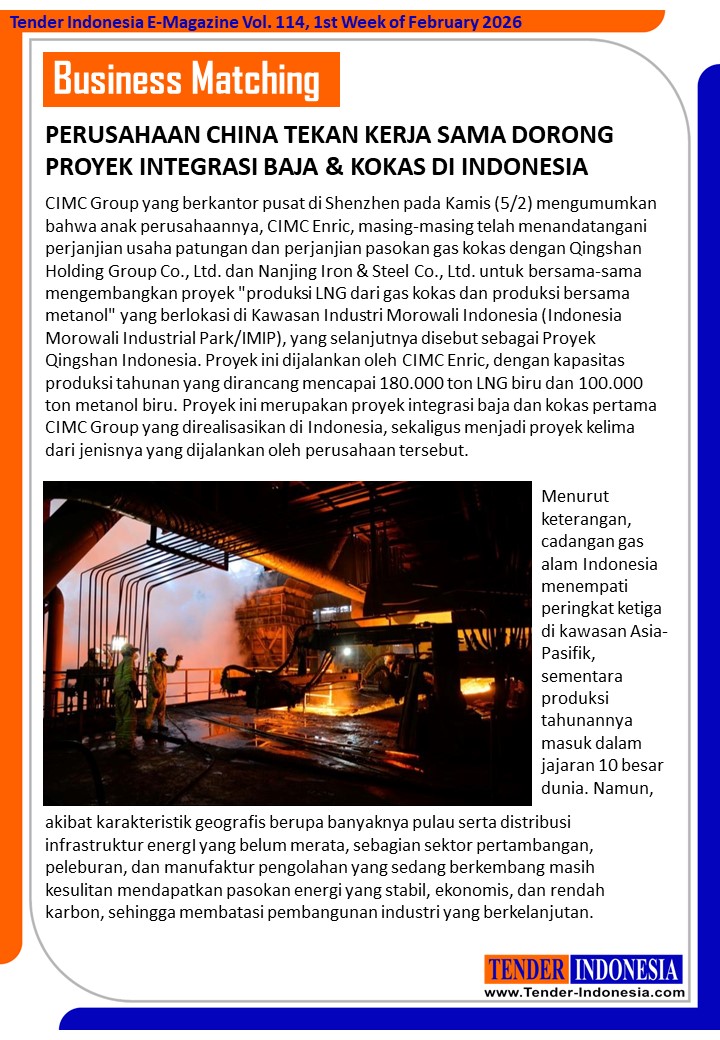 CIMC Group yang berkantor pusat di Shenzhen pada Kamis (5/2) mengumumkan bahwa anak perusahaannya, CIMC Enric, masing-masing telah menandatangani perjanjian usaha patungan dan perjanjian pasokan gas kokas dengan Qingshan Holding Group Co., Ltd. dan Nanjing Iron & Steel Co., Ltd. untuk bersama-sama mengembangkan proyek "produksi LNG dari gas kokas dan produksi bersama metanol" yang berlokasi di Kawasan Industri Morowali Indonesia (Indonesia Morowali Industrial Park/IMIP), yang selanjutnya disebut sebagai Proyek Qingshan Indonesia. Proyek ini dijalankan oleh CIMC Enric, dengan kapasitas produksi tahunan yang dirancang mencapai 180.000 ton LNG biru dan 100.000 ton metanol biru. Proyek ini merupakan proyek integrasi baja dan kokas pertama CIMC Group yang direalisasikan di Indonesia, sekaligus menjadi proyek kelima dari jenisnya yang dijalankan oleh perusahaan tersebut.