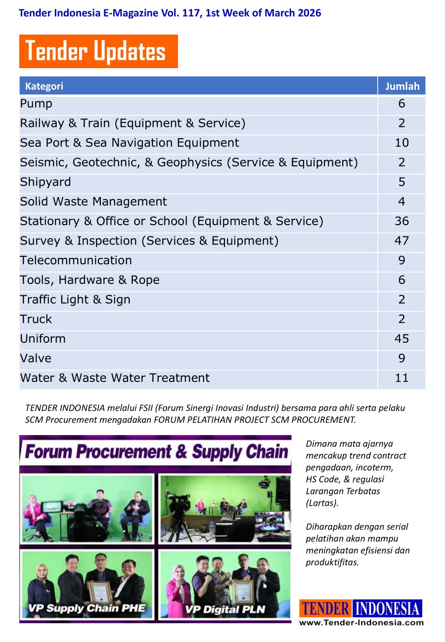 TENDER INDONESIA melalui FSII (Forum Sinergi Inovasi Industri) bersama para ahli serta pelaku SCM Procurement mengadakan FORUM PELATIHAN PROJECT SCM PROCUREMENT.