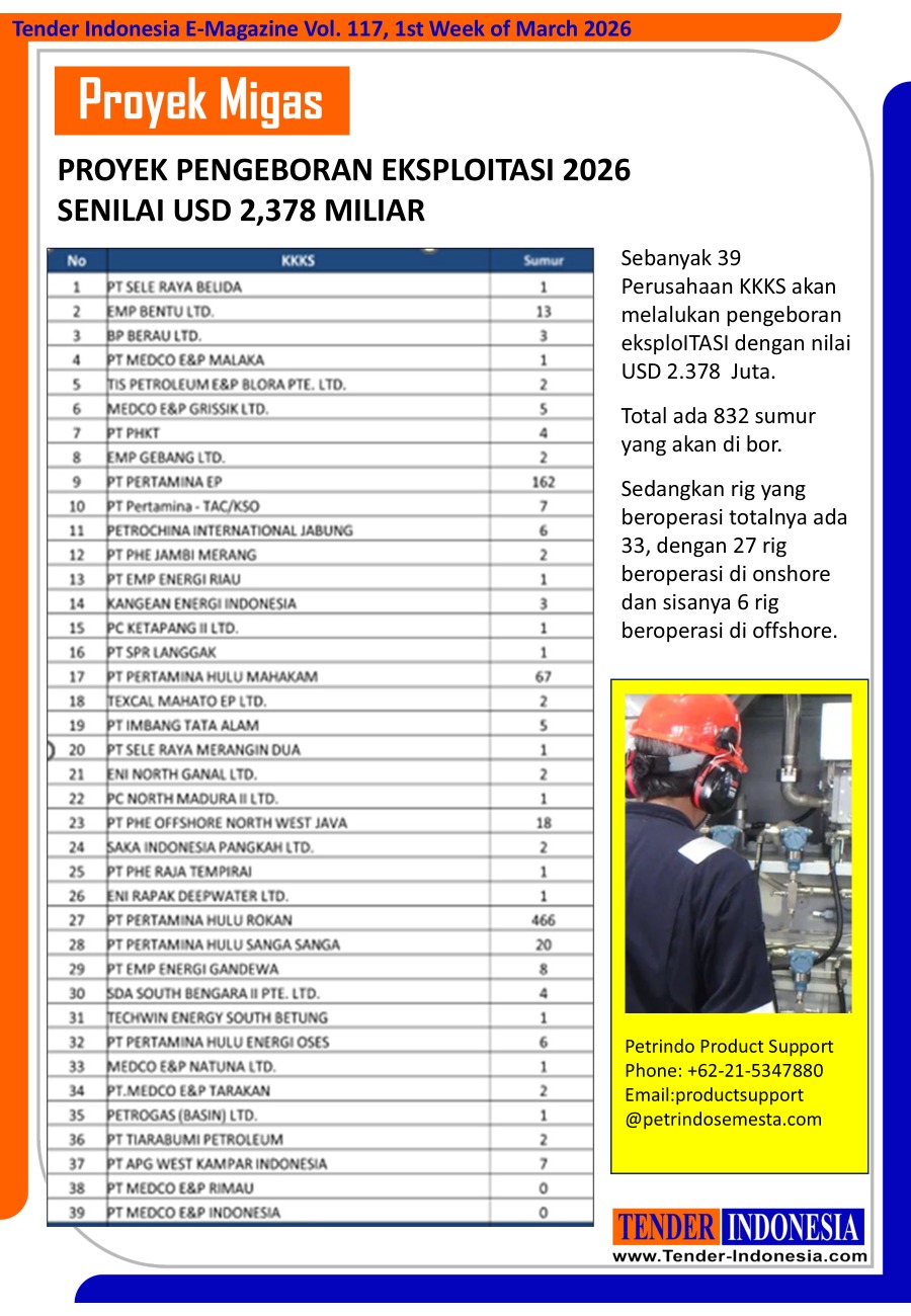 Proyek Pengeboran Eksploitasi 2026 Senilai USD 2,378 Miliar