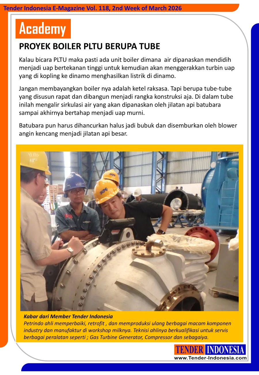 Jangan membayangkan boiler nya adalah ketel raksasa. Tapi berupa tube-tube yang disusun rapat dan dibangun menjadi rangka konstruksi aja. Di dalam tube inilah mengalir sirkulasi air yang akan dipanaskan oleh jilatan api batubara sampai akhirnya bertahap menjadi uap murni.