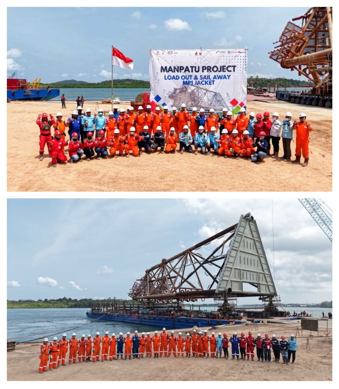 GM PT Pertamina Hulu Mahakam - Bapak Setyo Sapto Edi dan team PHM serta team Meindo Elang Indah, sukses melaksanakan kegiatan Load Out MP1 Jacket untuk proyek MANPATU.