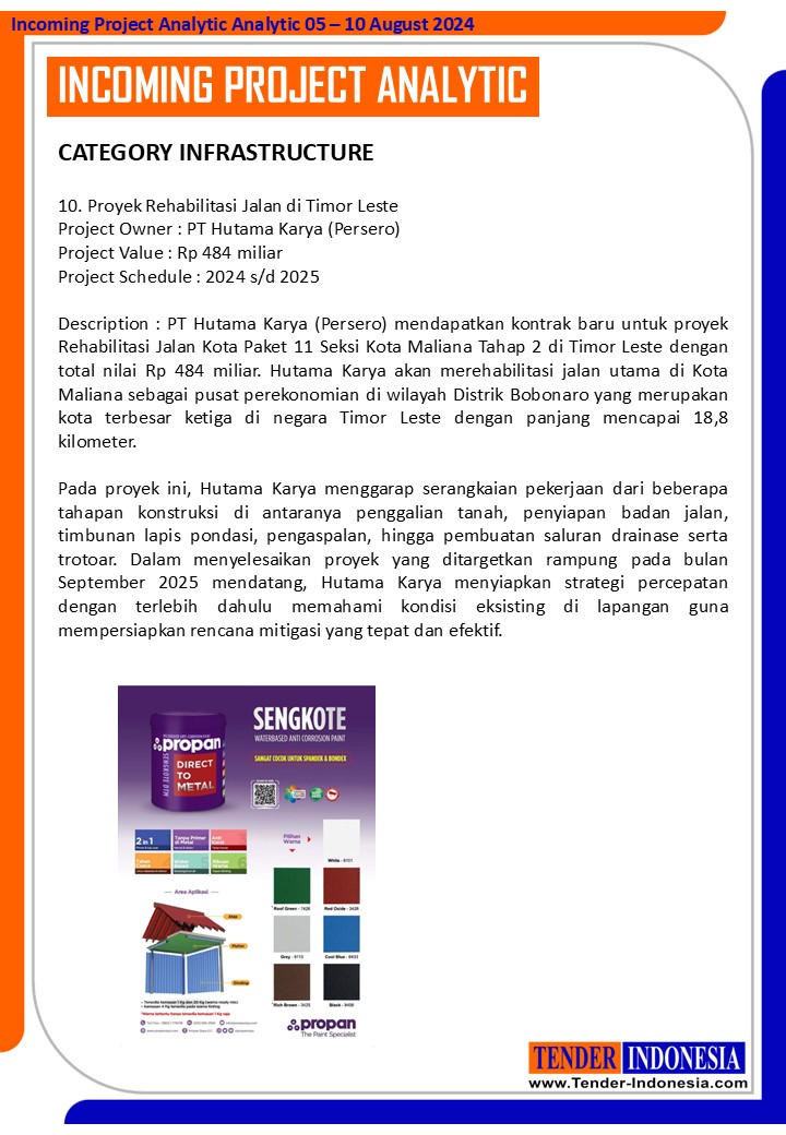 Project Owner : PT Hutama Karya (Persero) Project Value : Rp 484 miliar Project Schedule : 2024 s/d 2025