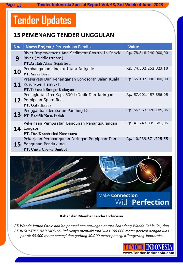 PT. Wanda Jembo Cable adalah perusahaan patungan antara Shandong Wanda Cable Co., dan PT. INDUSTRI SINAR MONAS. Pabriknya memiliki total luas 100.000 meter persegi dengan luas pabrik 60.000 meter persegi dan gudang 40.000 meter persegi di Tangerang-Indonesia.