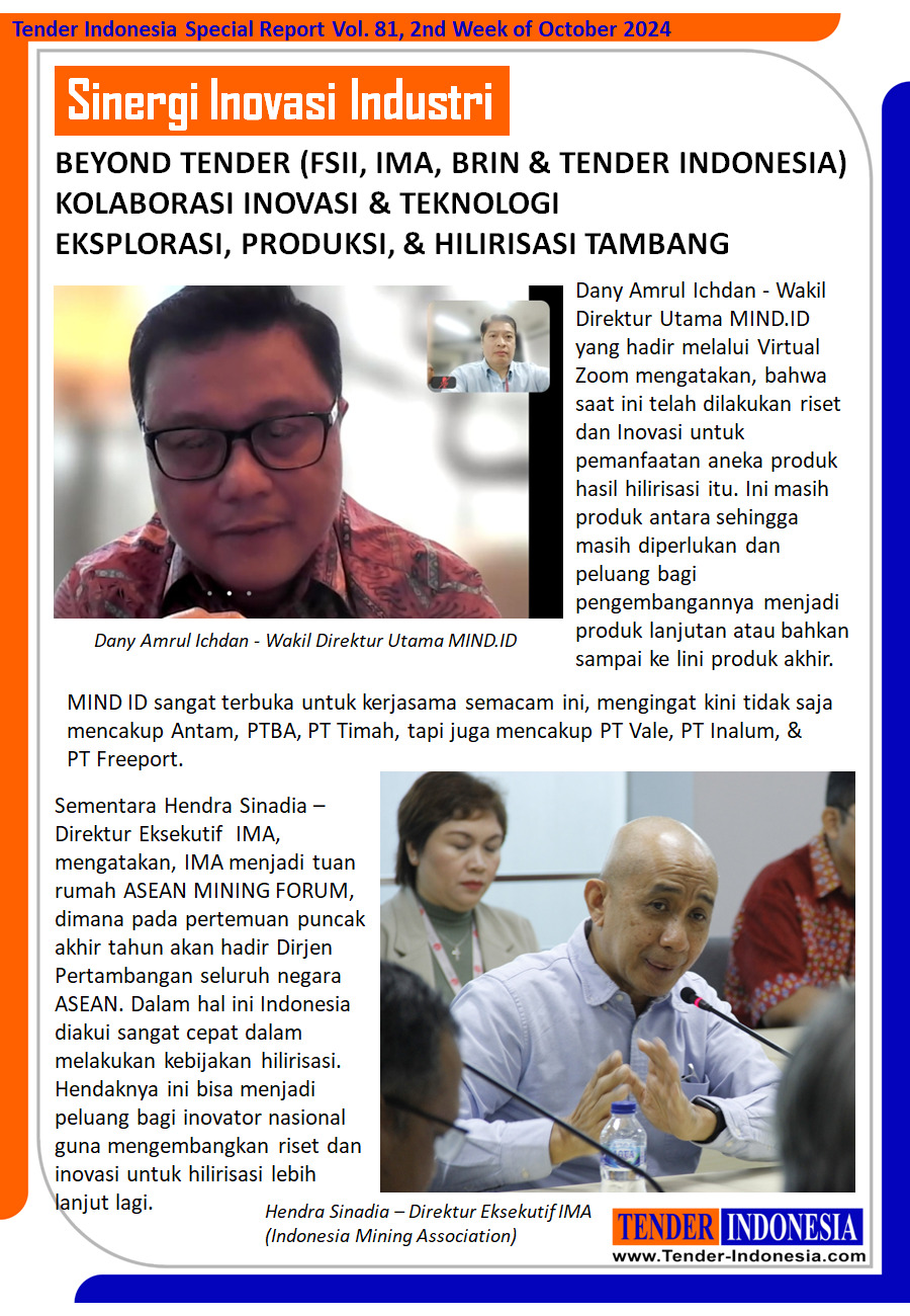 Beyond Tender (FSII, BRIN, IMA & Tender Indonesia) Kolaborasi Inovasi & Teknologi Tambang