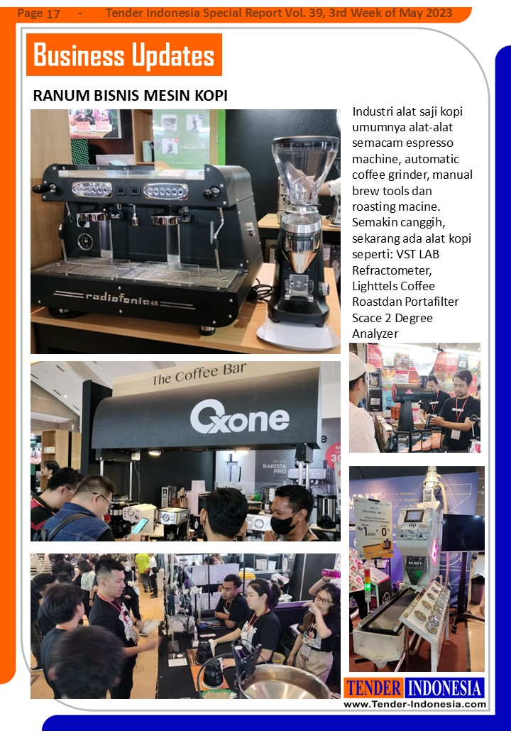 Industri alat saji kopi umumnya alat-alat semacam espresso machine, automatic coffee grinder, manual brew tools dan roasting macine. Semakin canggih, sekarang ada alat kopi seperti: VST LAB Refractometer, Lighttels Coffee Roastdan Portafilter Scace 2 Degree Analyzer
