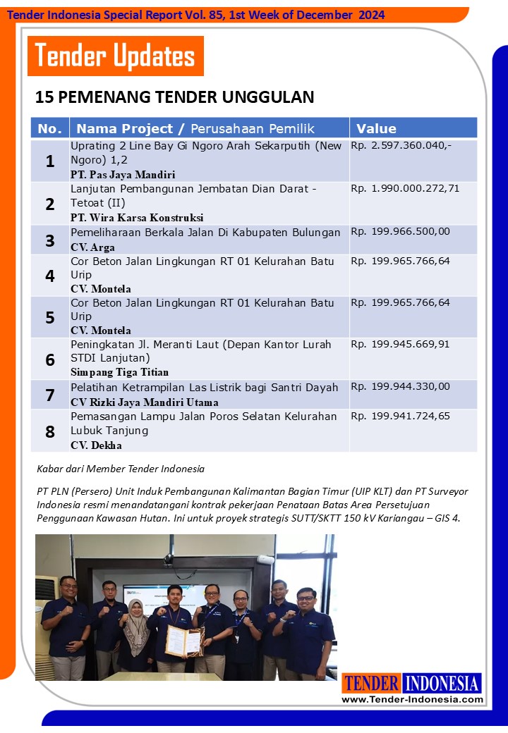 PT PLN (Persero) Unit Induk Pembangunan Kalimantan Bagian Timur (UIP KLT) dan PT Surveyor Indonesia resmi menandatangani kontrak pekerjaan Penataan Batas Area Persetujuan Penggunaan Kawasan Hutan. Ini untuk proyek strategis SUTT/SKTT 150 kV Kariangau – GIS 4.