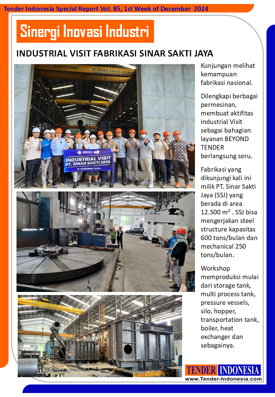 Fabrikasi yang dikunjungi kali ini milik PT. Sinar Sakti Jaya (SSJ) yang berada di area 12.500 m² . SSJ bisa mengerjakan steel structure kapasitas 600 tons/bulan dan mechanical 250 tons/bulan.