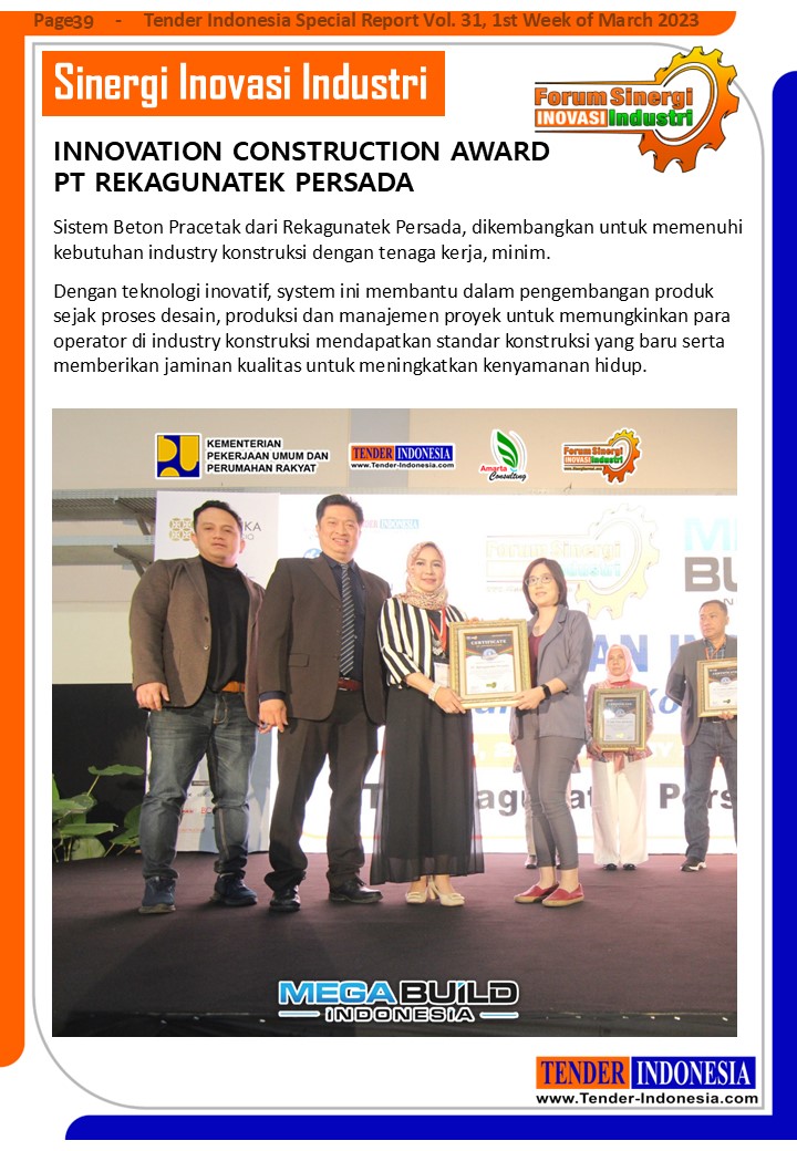 Sistem Beton Pracetak dari Rekagunatek Persada, dikembangkan untuk memenuhi kebutuhan industry konstruksi dengan tenaga kerja, minim.