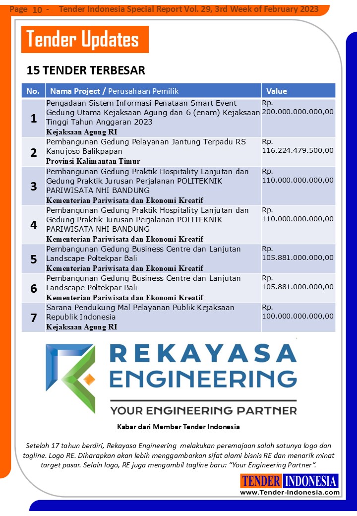 Setelah 17 tahun berdiri, Rekayasa Engineering melakukan peremajaan salah satunya logo dan tagline. Logo RE. Diharapkan akan lebih menggambarkan sifat alami bisnis RE dan menarik minat target pasar. Selain logo, RE juga mengambil tagline baru: “Your Engineering Partner“.