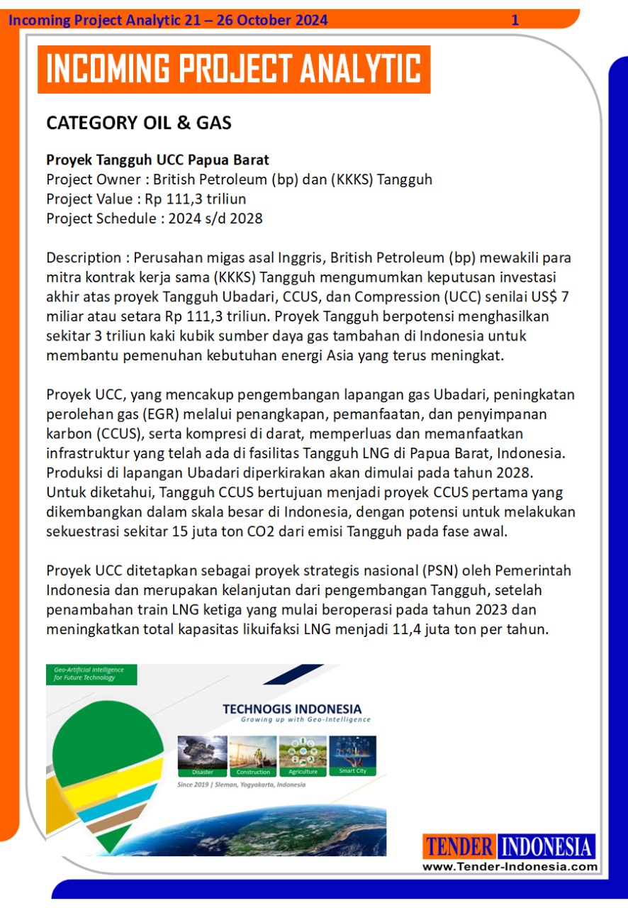 Perusahan migas asal Inggris, British Petroleum (bp) mewakili para mitra kontrak kerja sama (KKKS) Tangguh mengumumkan keputusan investasi akhir atas proyek Tangguh Ubadari, CCUS, dan Compression (UCC) senilai US$ 7 miliar atau setara Rp 111,3 triliun. Proyek Tangguh berpotensi menghasilkan sekitar 3 triliun kaki kubik sumber daya gas tambahan di Indonesia untuk membantu pemenuhan kebutuhan energi Asia yang terus meningkat.