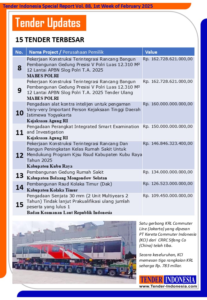 Satu gerbong KRL Commuter Line (Jakarta) yang dipesan PT Kereta Commuter Indonesia (KCI) dari CRRC Sifang Co (China) telah tiba. Secara keseluruhan, KCI memesan tiga rangkaian KRL seharga Rp. 783 miliar.