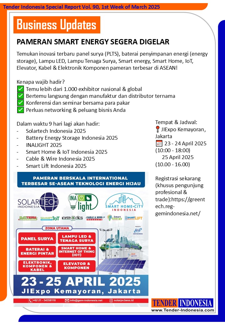 Dalam waktu 9 hari lagi akan hadir: -Solartech Indonesia 2025 -Battery Energy Storage Indonesia 2025 -INALIGHT 2025 -Smart Home & IoT Indonesia 2025 -Cable & Wire Indonesia 2025 -Smart Lift Indonesia 2025