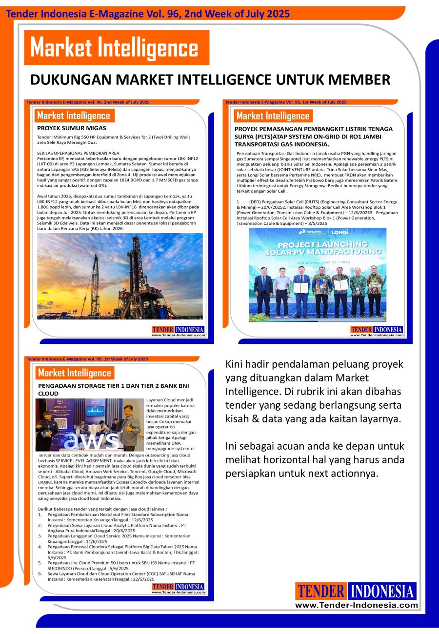 Kini hadir pendalaman peluang proyek yang dituangkan dalam Market Intelligence. Di rubrik ini akan dibahas tender yang sedang berlangsung serta kisah & data yang ada kaitan layarnya.