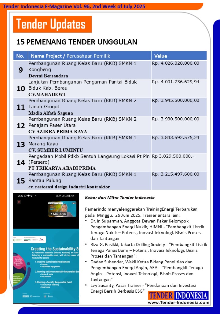 Pamerindo menyelenggarakan TrainingEnergi Terbarukan pada Minggu, 29 Juni 2025. Trainer antara lain: •Dr. Ir. Suparman, Anggota Dewan Pakar Kelompok Pengembangan Energi Nuklir, HIMNI - "Pembangkit Listrik Tenaga Nuklir – Potensi, Inovasi Teknologi, Bisnis Proses dan Tantangan •Riza G. Pasikki, Jakarta Drilling Society - Pembangkit Listrik Tenaga Panas Bumi – "Potensi, Inovasi Teknologi, Bisnis Proses dan Tantangan" •Dadan Suhendar, Wakil Ketua Bidang Penelitian dan Pengembangan Energi Angin, AEAI - "Pembangkit Tenaga Angin – Potensi, Inovasi Teknologi, Bisnis Proses dan Tantangan“ •Evy Susanty, Pasar Trainer - "Pendanaan dan Investasi Energi Bersih Berbasis ESG"