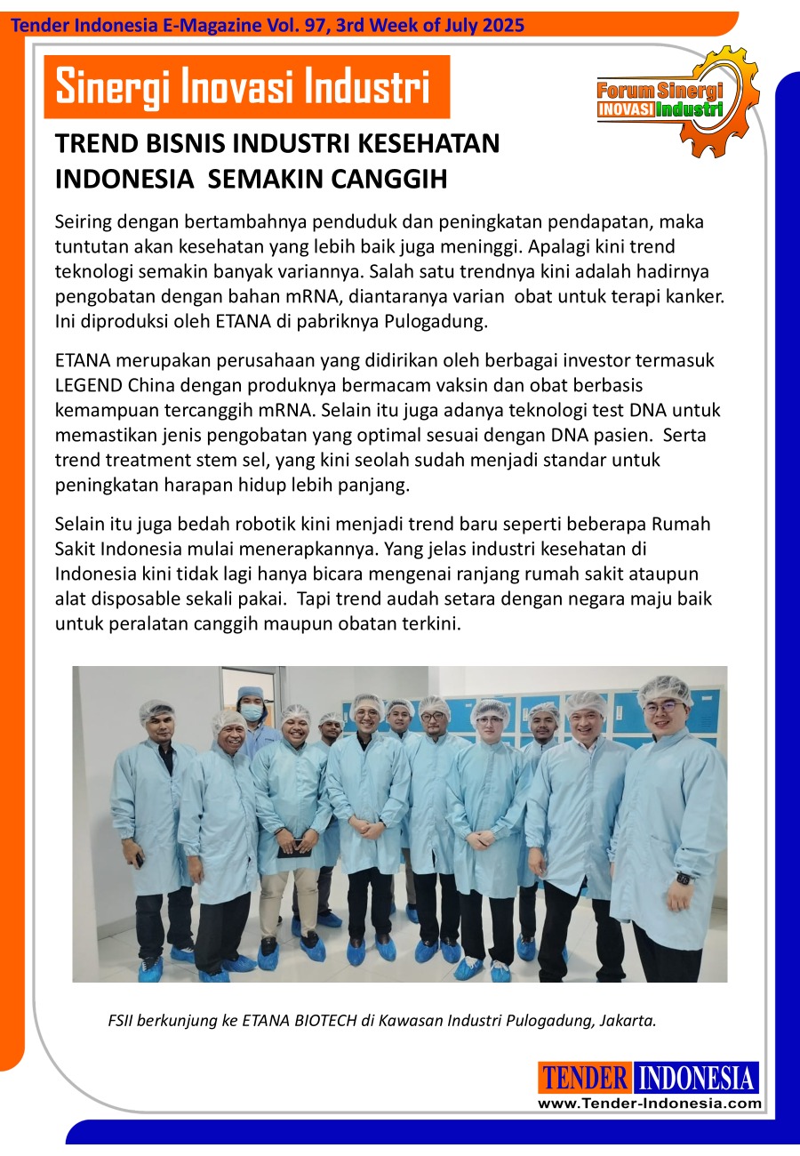 Seiring dengan bertambahnya penduduk dan peningkatan pendapatan, maka tuntutan akan kesehatan yang lebih baik juga meninggi. Apalagi kini trend teknologi semakin banyak variannya. Salah satu trendnya kini adalah hadirnya pengobatan dengan bahan mRNA, diantaranya varian obat untuk terapi kanker. Ini diproduksi oleh ETANA di pabriknya Pulogadung.