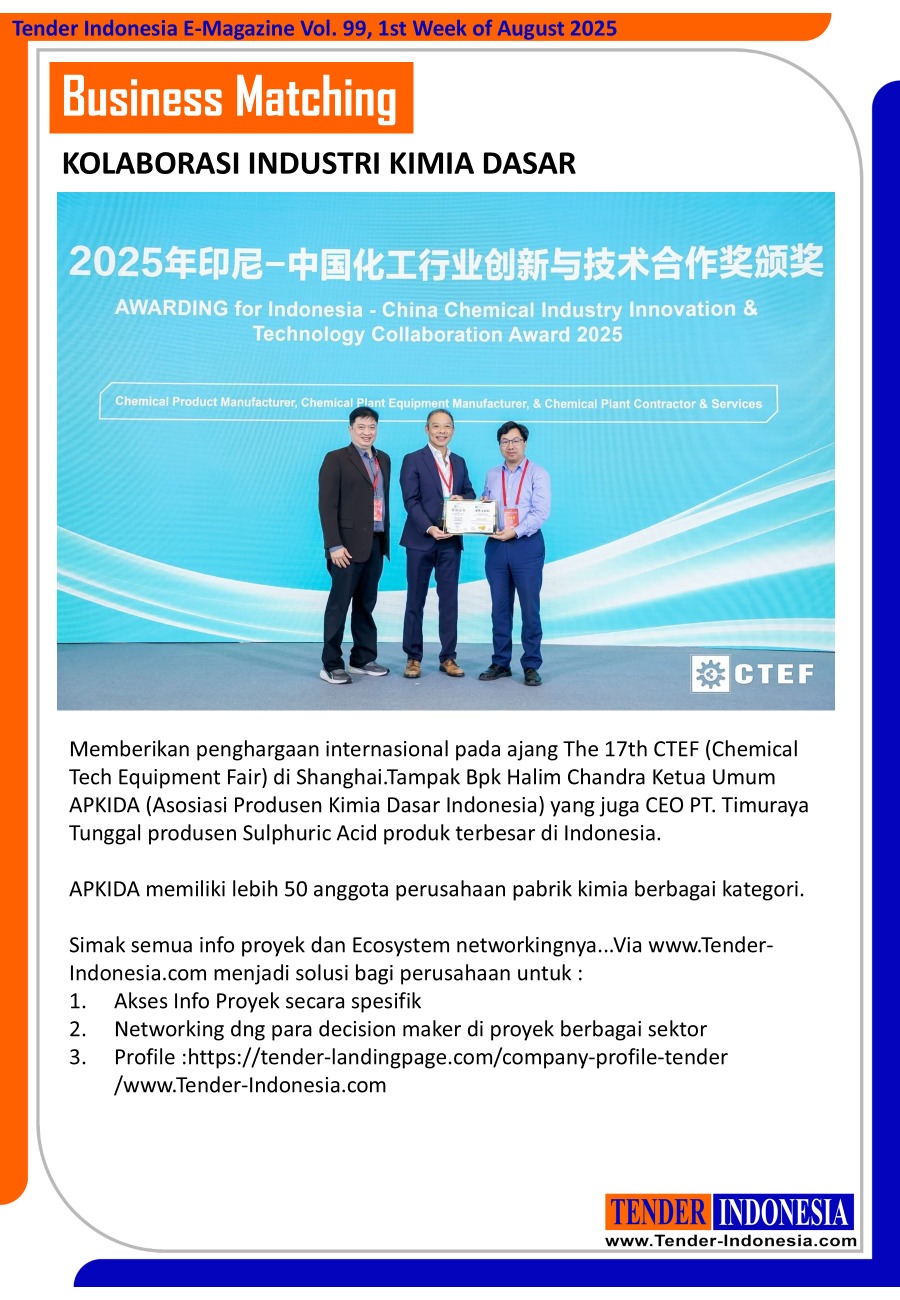 Memberikan penghargaan internasional pada ajang The 17th CTEF (Chemical Tech Equipment Fair) di Shanghai.Tampak Bpk Halim Chandra Ketua Umum APKIDA (Asosiasi Produsen Kimia Dasar Indonesia) yang juga CEO PT. Timuraya Tunggal produsen Sulphuric Acid produk terbesar di Indonesia.