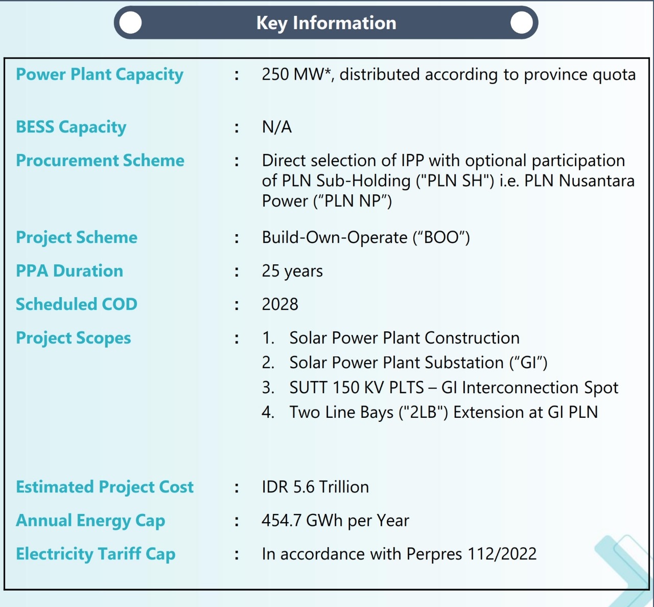 Mentari Jawa 250 MW menandai inisiatif proyek gelombang pertama yang didedikasikan untuk proyek teknologi PV surya di tiga wilayah: Banten, Jawa Barat, dan Jawa Timur.