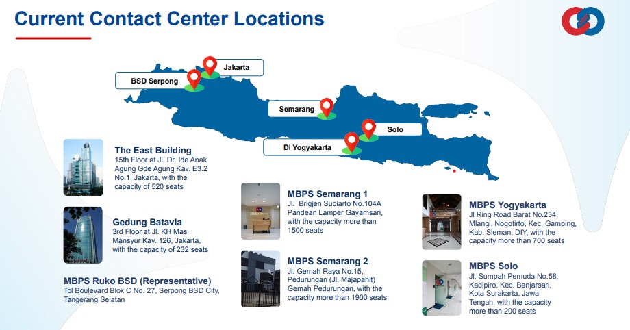Lokasi Contact Centre MitraComm yang tersebar di beberapa kota
