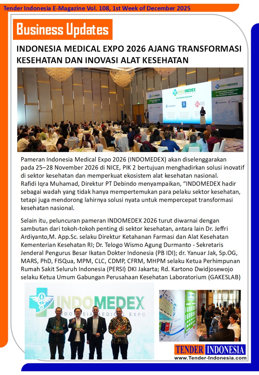 Pameran Indonesia Medical Expo 2026 (INDOMEDEX) akan diselenggarakan pada 25–28 November 2026 di NICE, PIK 2 bertujuan menghadirkan solusi inovatif di sektor kesehatan dan memperkuat ekosistem alat kesehatan nasional. Rafidi Iqra Muhamad, Direktur PT Debindo menyampaikan, “INDOMEDEX hadir sebagai wadah yang tidak hanya mempertemukan para pelaku sektor kesehatan, tetapi juga mendorong lahirnya solusi nyata untuk mempercepat transformasi kesehatan nasional.