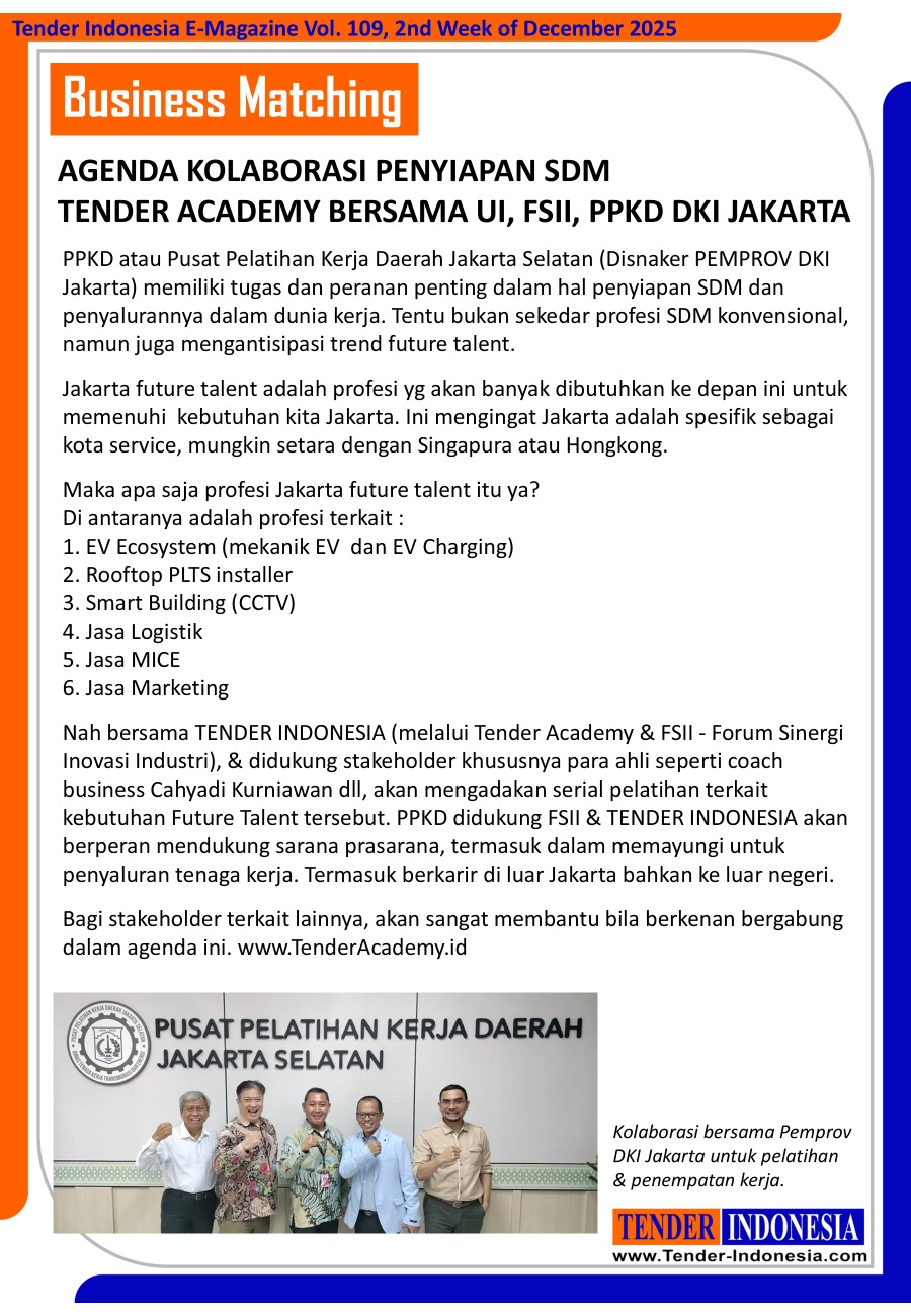Nah bersama TENDER INDONESIA (melalui Tender Academy & FSII - Forum Sinergi Inovasi Industri), & didukung stakeholder khususnya para ahli seperti coach business Cahyadi Kurniawan dll, akan mengadakan serial pelatihan terkait kebutuhan Future Talent tersebut. PPKD didukung FSII & TENDER INDONESIA akan berperan mendukung sarana prasarana, termasuk dalam memayungi untuk penyaluran tenaga kerja. Termasuk berkarir di luar Jakarta bahkan ke luar negeri.