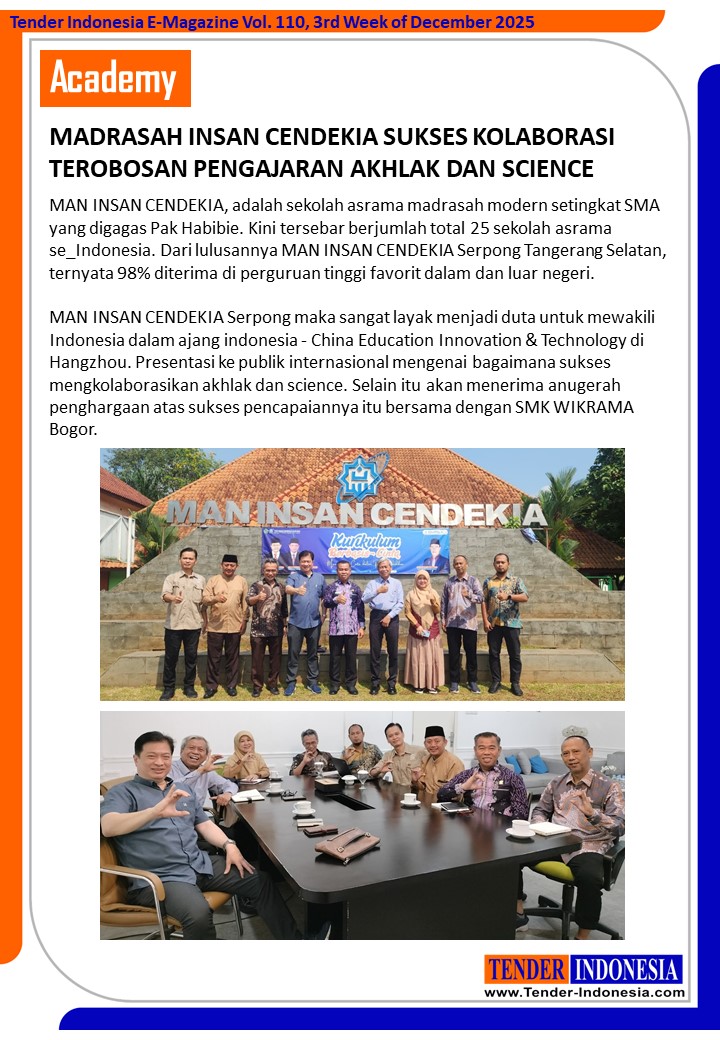 MAN INSAN CENDEKIA Serpong maka sangat layak menjadi duta untuk mewakili Indonesia dalam ajang indonesia - China Education Innovation & Technology di Hangzhou. Presentasi ke publik internasional mengenai bagaimana sukses mengkolaborasikan akhlak dan science. Selain itu akan menerima anugerah penghargaan atas sukses pencapaiannya itu bersama dengan SMK WIKRAMA Bogor.
