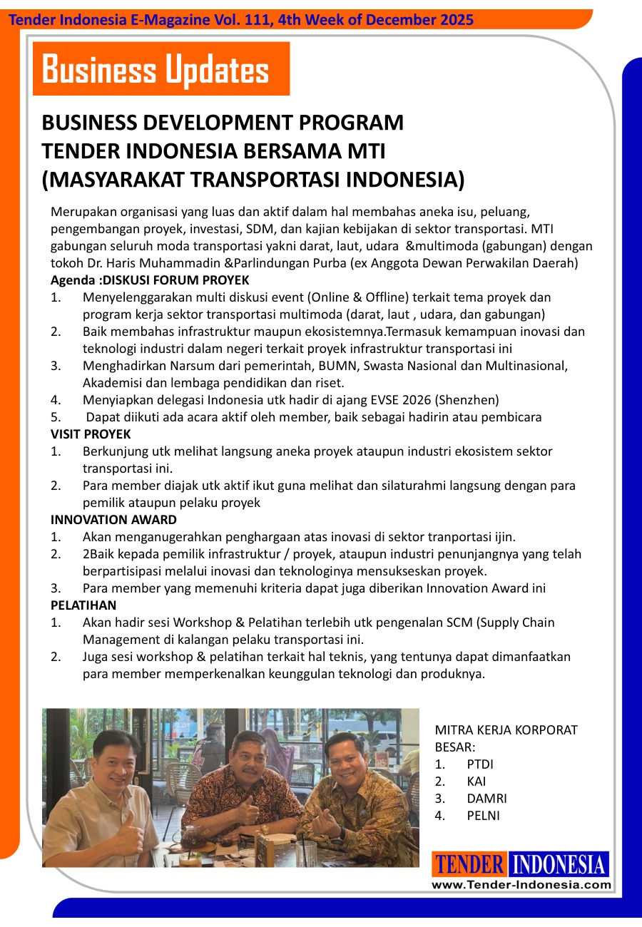 Business Development Program Tender Indonesia Bersama MTI (Masyarakat Transportasi Indonesia)