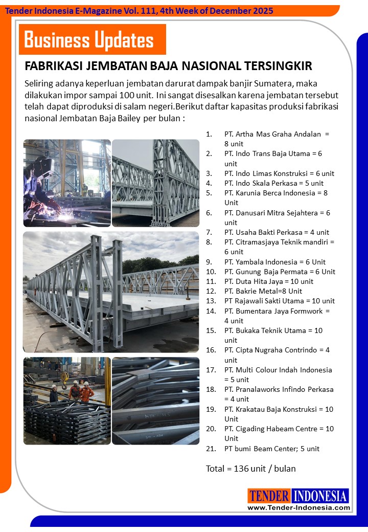 Seliring adanya keperluan jembatan darurat dampak banjir Sumatera, maka dilakukan impor sampai 100 unit.