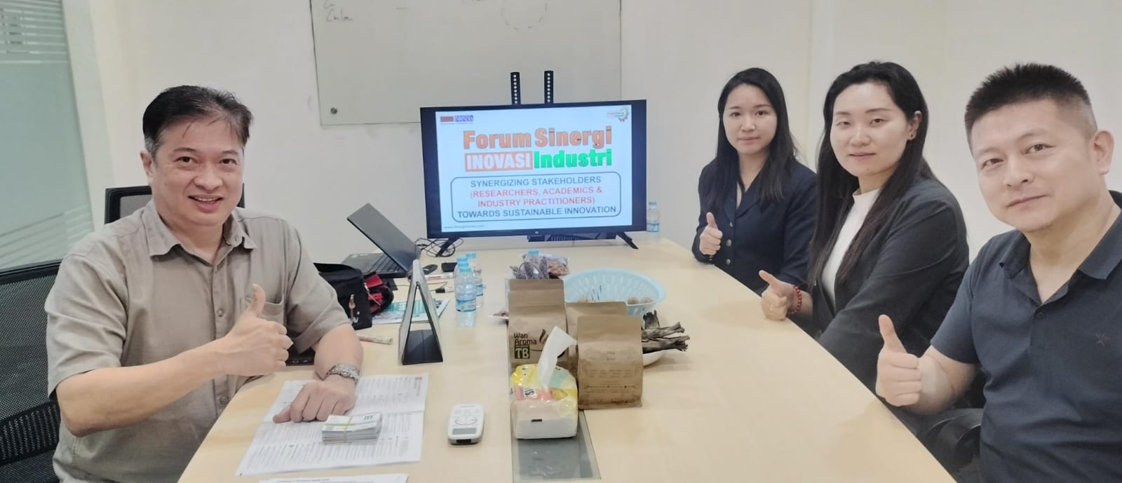 Tito Loho - CEO TENDER INDONESIA yang juga Ketua Bidang Hubungan Antar Lembaga APMI (Asosiasi Pemboran Migas & Panas Bumi Indonesia), Ms.Freya Liu (Director Zhenwei International), Ms.Sun (General Manager) & Mr.Liu (Deputy General Manager). https://tender-landingpage.com/oil-gas-drilling/