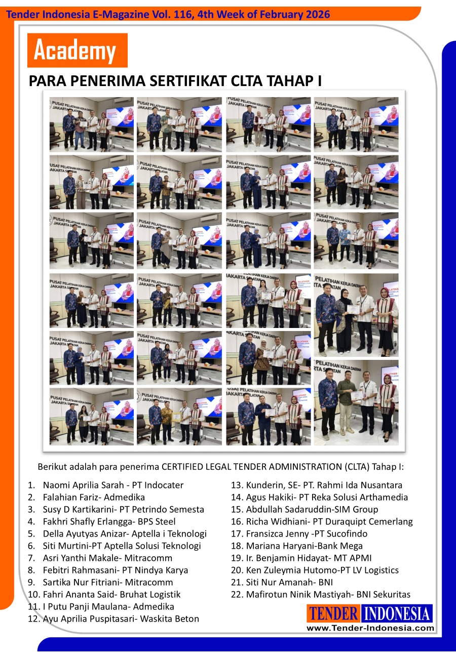 Berikut adalah para penerima CERTIFIED LEGAL TENDER ADMINISTRATION (CLTA) Tahap I: