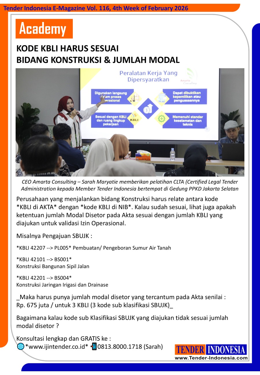 Kode KBLI Harus Sesuai Bidang Konstruksi & Jumlah Modal