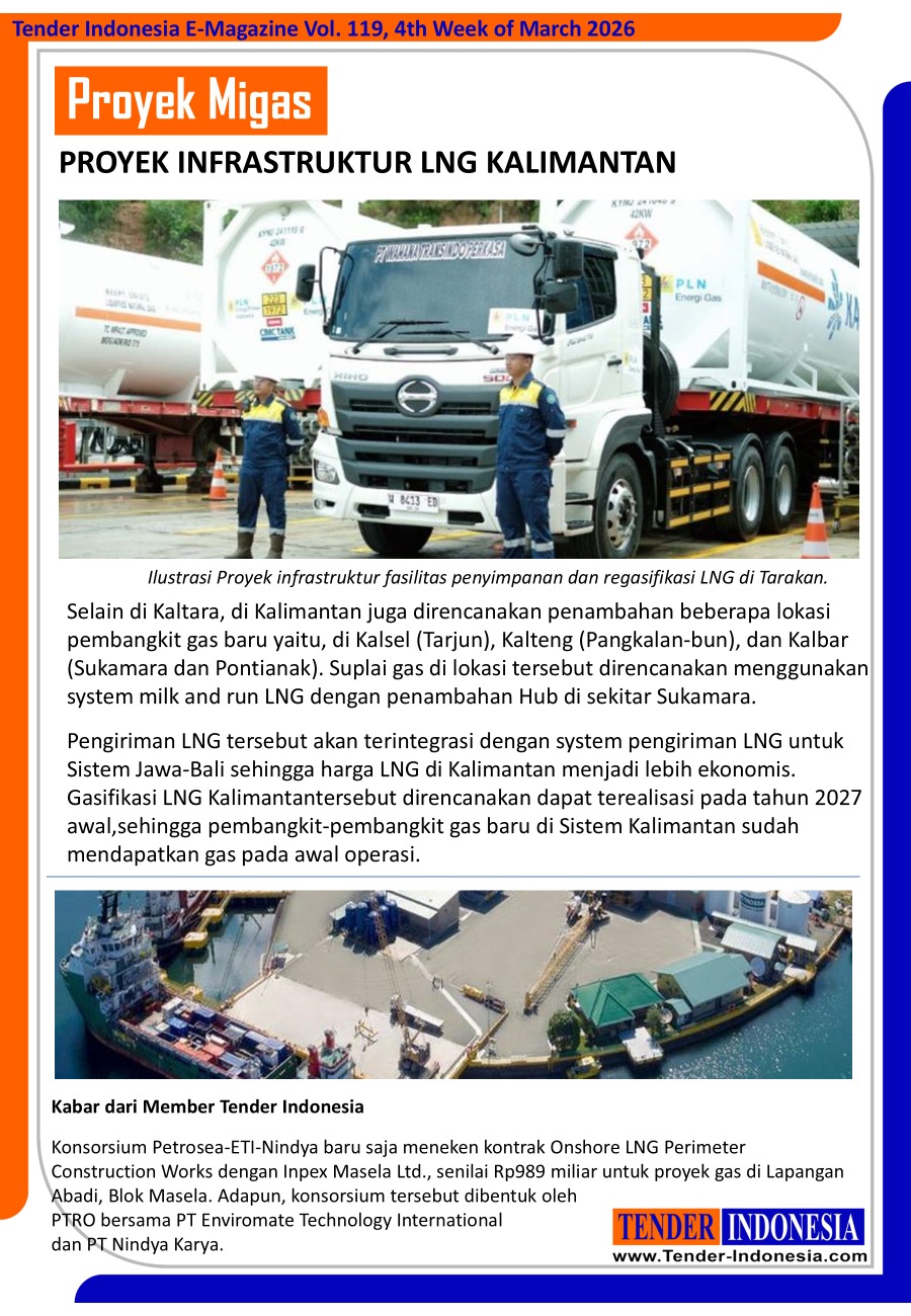 Pengiriman LNG tersebut akan terintegrasi dengan system pengiriman LNG untuk Sistem Jawa-Bali sehingga harga LNG di Kalimantan menjadi lebih ekonomis. Gasifikasi LNG Kalimantantersebut direncanakan dapat terealisasi pada tahun 2027 awal,sehingga pembangkit-pembangkit gas baru di Sistem Kalimantan sudah mendapatkan gas pada awal operasi.