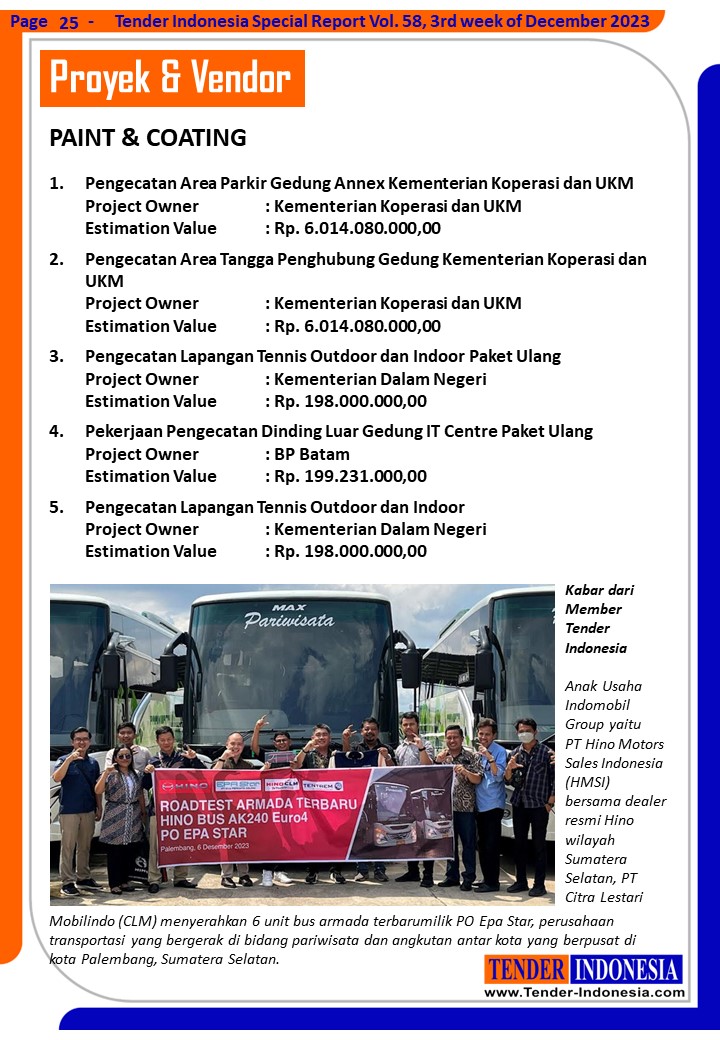 Anak Usaha Indomobil Group yaitu PT Hino Motors Sales Indonesia (HMSI) bersama dealer resmi Hino wilayah Sumatera Selatan, PT Citra Lestari Mobilindo (CLM) menyerahkan 6 unit bus armada terbarumilik PO Epa Star, perusahaan transportasi yang bergerak di bidang pariwisata dan angkutan antar kota yang berpusat di kota Palembang, Sumatera Selatan.