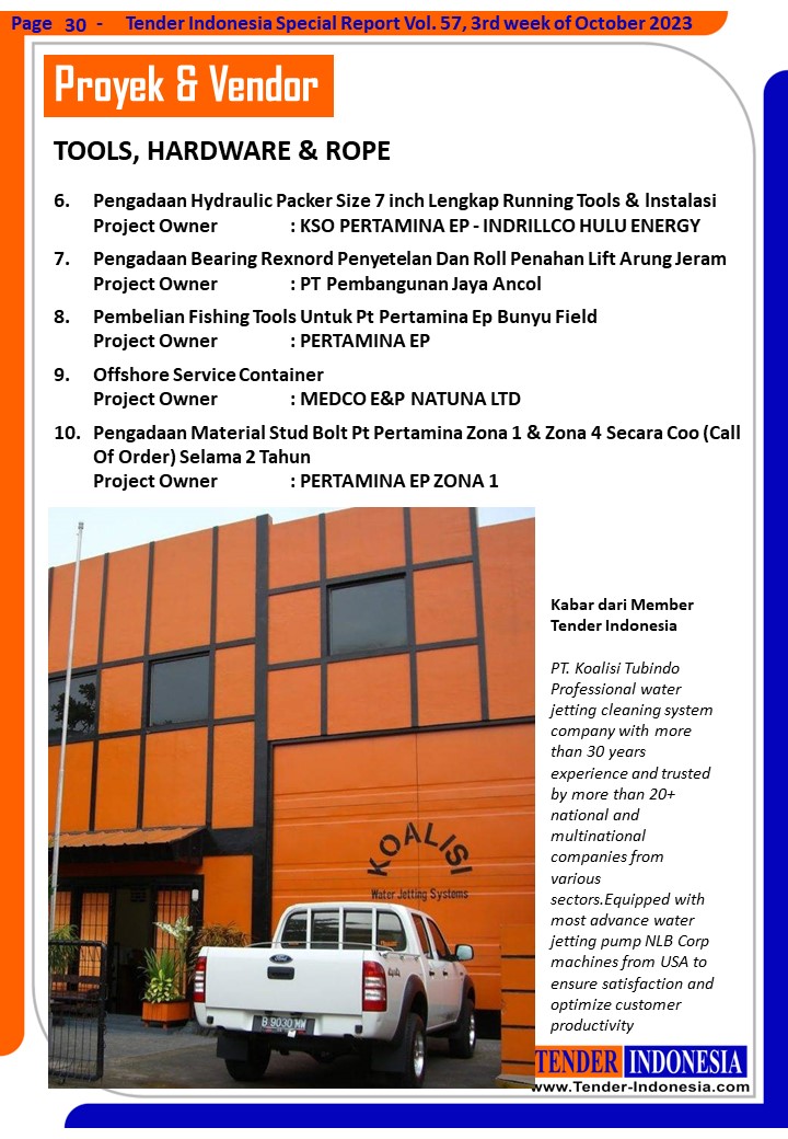 PT. Koalisi Tubindo Professional water jetting cleaning system company with more than 30 years experience and trusted by more than 20+ national and multinational companies from various sectors.Equipped with most advance water jetting pump NLB Corp machines from USA to ensure satisfaction and optimize customer productivity