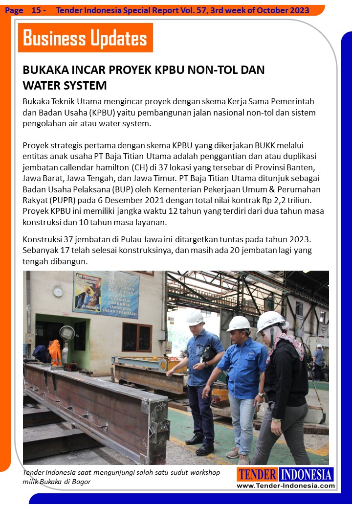Bukaka Incar Proyek KPBU Non-tol Dan Water System