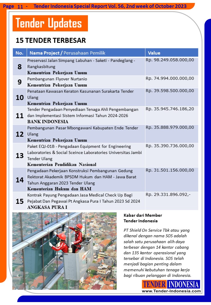 berikut adalah Daftar 15 Tender Terbesar Periode : 05-10-2023 s/d 12-10-2023