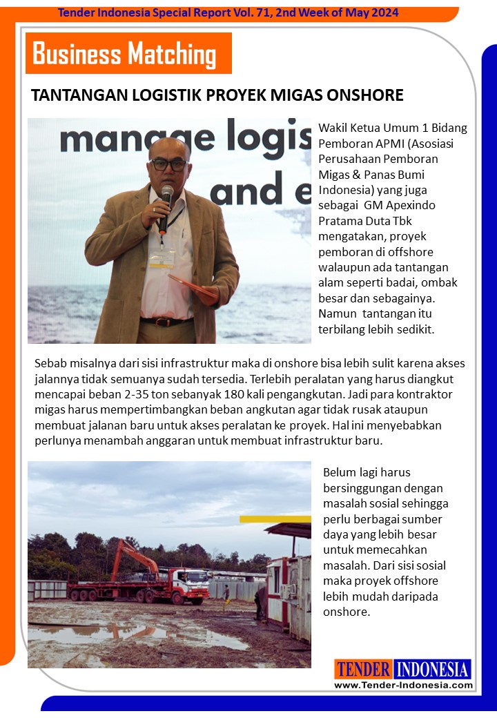Wakil Ketua Umum 1 Bidang Pemboran APMI (Asosiasi Perusahaan Pemboran Migas & Panas Bumi Indonesia) yang juga sebagai GM Apexindo Pratama Duta Tbk mengatakan, proyek pemboran di offshore walaupun ada tantangan alam seperti badai, ombak besar dan sebagainya. Namun tantangan itu terbilang lebih sedikit.