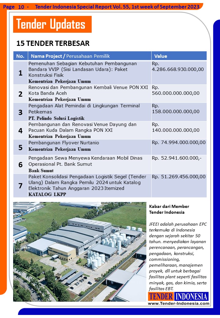 JFEEI adalah perusahaan EPC terkemuka di Indonesia dengan sejarah sekitar 50 tahun. menyediakan layanan perencanaan, perancangan, pengadaan, konstruksi, commissioning, pemeliharaan, manajemen proyek, dll untuk berbagai fasilitas plant seperti fasilitas minyak, gas, dan kimia, serta fasilitas EBT.