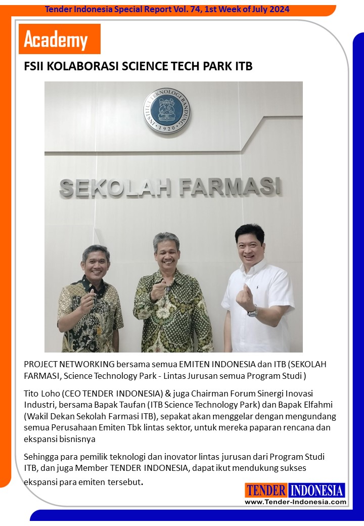 Tito Loho (CEO TENDER INDONESIA) & juga Chairman Forum Sinergi Inovasi Industri, bersama Bapak Taufan (ITB Science Technology Park) dan Bapak Elfahmi (Wakil Dekan Sekolah Farmasi ITB), sepakat akan menggelar dengan mengundang semua Perusahaan Emiten Tbk lintas sektor, untuk mereka paparan rencana dan ekspansi bisnisnya