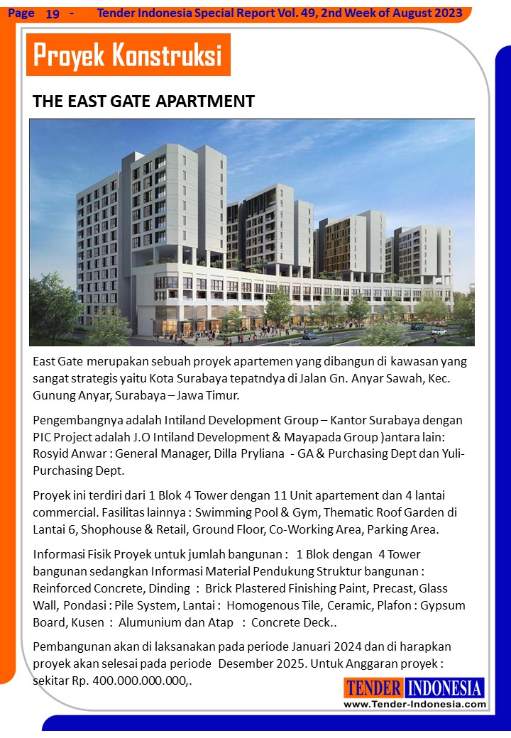 Pembangunan akan di laksanakan pada periode Januari 2024 dan di harapkan proyek akan selesai pada periode Desember 2025. Untuk Anggaran proyek : sekitar Rp. 400.000.000.000,.